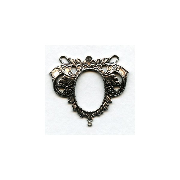 You will receive four oxidized sterling silver plated brass three loop focal point connectors. They measure 33x37mm. The open oval in the center measures 19x13mm. #H50